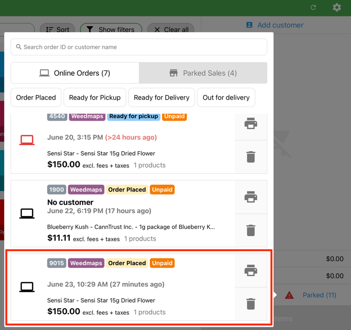 1. Navigate to Parked > Online Orders