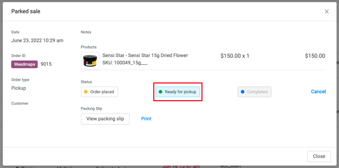 3. Package the order and change the order status to "Ready for Pickup" (if it is a pre-paid order - you can set the order status to "Complete")