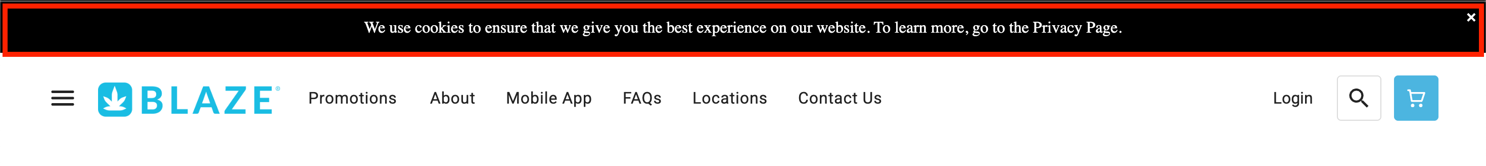 Check the legal requirements in the country of your target audience regarding cookie notifications, the form of the notification, and relevant links to add to the text of the notification. BLAZE is not responsible for configuring cookies or privacy policy pages.