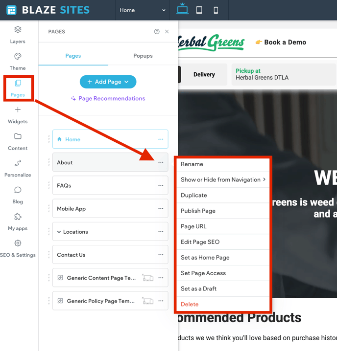 If you are in the editor, click Pages and then click the settings icon next to any page. Then click Show Me. Or, if you are in the Site List, click the three dot icon next to your site and select Site Dashboard. Then, click SEO.