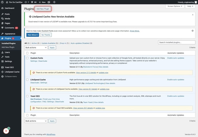 1. Click on Plugins and Add New Plugin