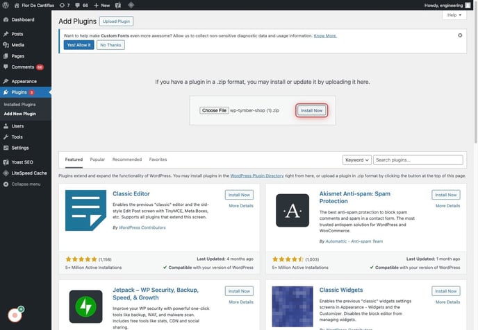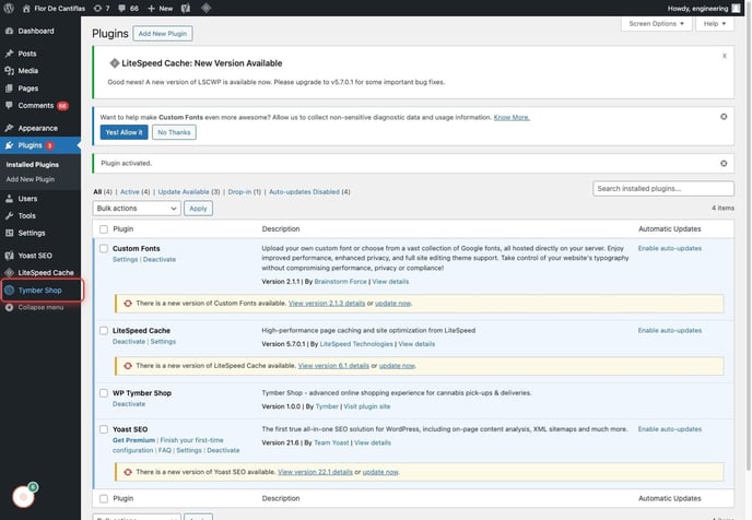 6. Click on Tymber Shop Plugin