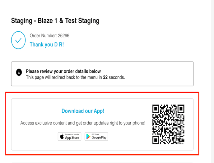 4) Promote Mobile App in Checkout Success (Kiosk): Shows a QR code on the kiosk order confirmation screens (enabled by default)