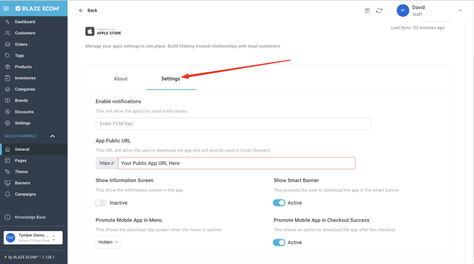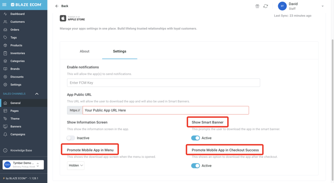 2) Promote Mobile App in Menu: Creates a mobile landing page that promotes your app. Users will land on this when going to your ecom site on a mobile device. There are 2 options to enable.