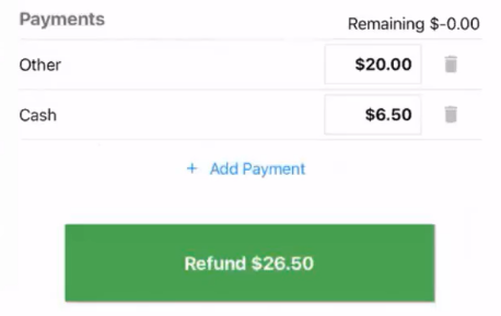 Once the correct products are selected, the POS provides the original payment methods that occurred during the sale. You can select any of the original payment methods to process the refund.