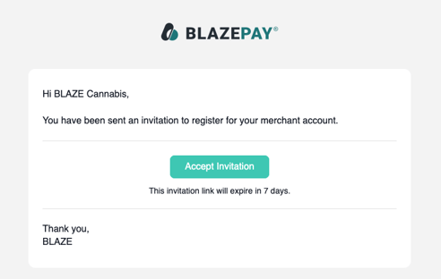- You will receive an email titled Invitation to Join BLAZE for Payment Processing (be sure to check your spam folder if not received within 5 minutes)