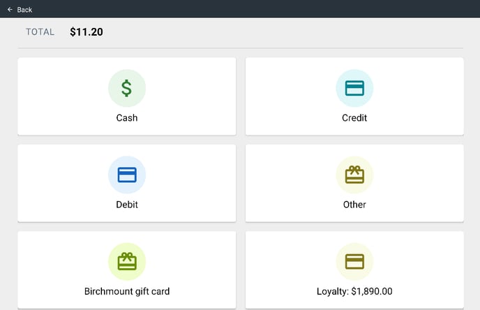 Select the “Loyalty” payment type. The box will include the customer’s points balance in addition to the dollar value conversion)) This will only be enabled if the customer has a loyalty balance greater than $0.