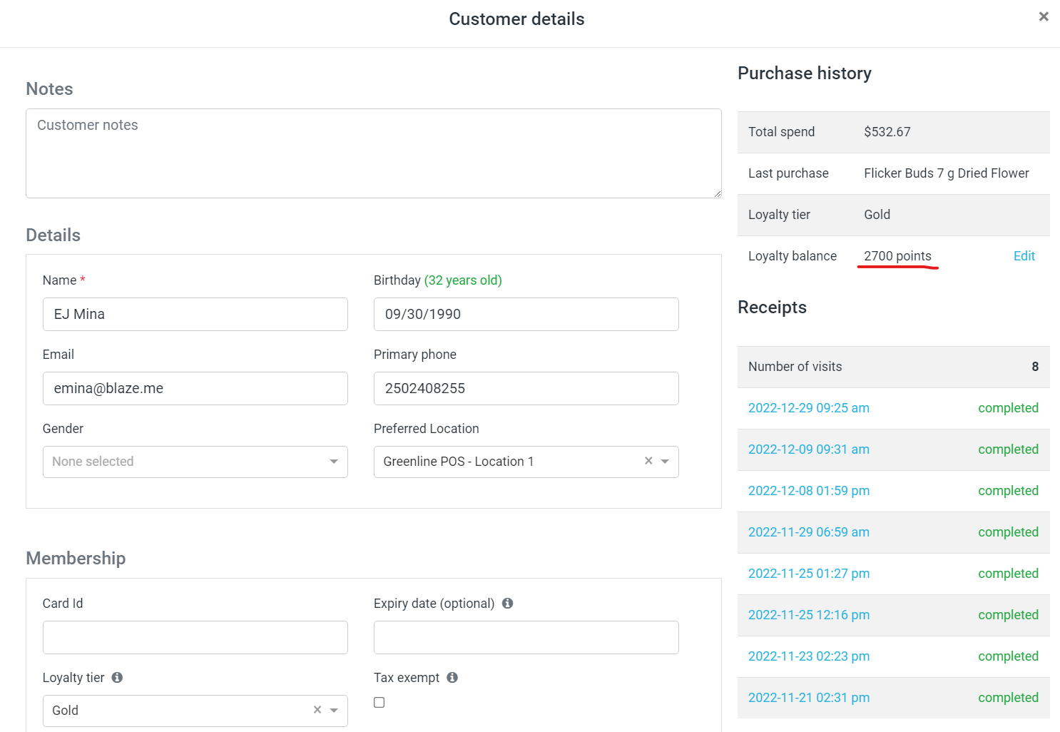 Utilize Greenline's built-in loyalty program at your retail store to configure points, create tiers, and reward your customers.