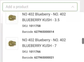 Type the name or SKU number of the product to be added and a preview of available products will appear.