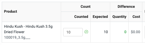 It is now 12:00 pm and Ernest has noted that 5 units of Hindu Kush 3.5g Dried Flower have been sold at the POS since the audit was created.