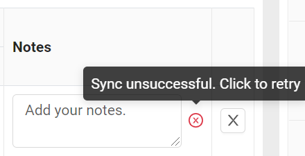 A red cross indicates that the value was not successfully added, and the user will need to retry. This red cross may appear if there is a connection issue with your internet or network.