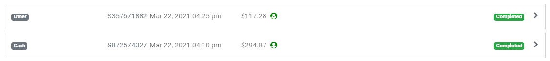 A customer profile can be attached to a sale. To identify sales with customer profiles, look for the green person icon.