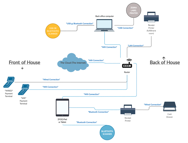 This article provides an overview of the types of hardware devices that will work with BLAZE POS. Additionally, a hardware diagram is provided to visualize how hardware can be connected.