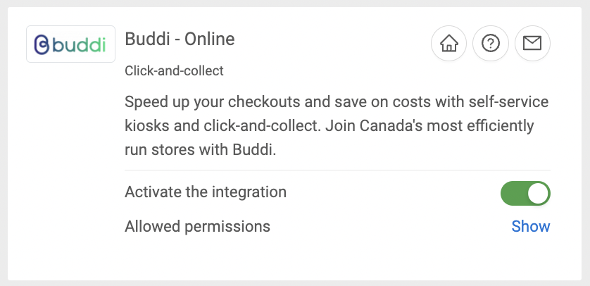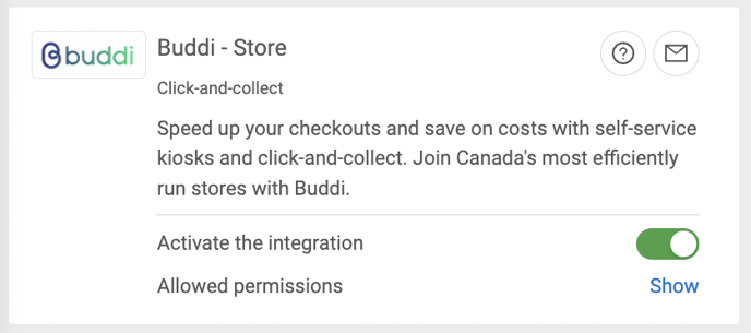 Ensure both the Buddi Store and Buddi Online integrations are enabled on your dashboard.